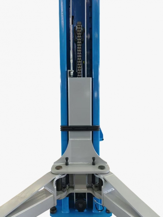 Двухстоечный электрогидравлический подъемник с нижней синхронизацией, грузоподъемность 4.5 т, механическое управление стопорами на одной колонне, цепной привод