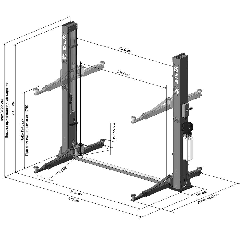 Подъемник двухстоечный Sivik ПГА-4100-НС 220В синий купить в Уфе цена ✅ - Все для СТО