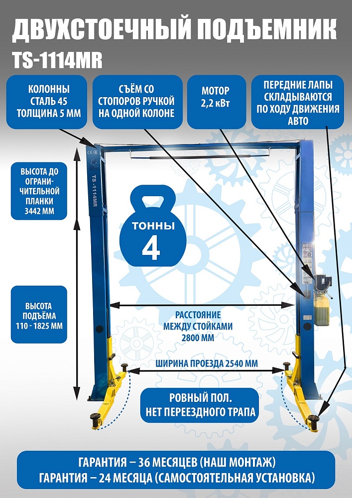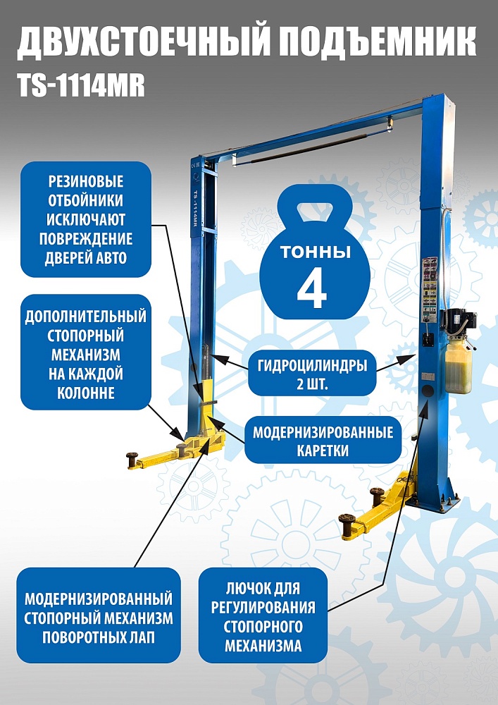 TS-1114MR подъемник 4 т, 2-х ст. электрогидравлический (2025) (380 V ТВ) купить в Уфе цена ✅ - Все для СТО
