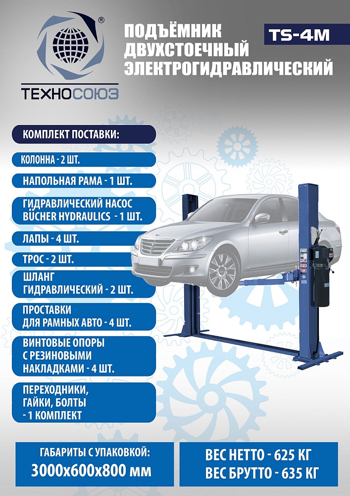 TS-4M Подъемник 2-хст. г/п 4 т с напольной рамой (220 V ТВ) купить в Уфе цена ✅ - Все для СТО