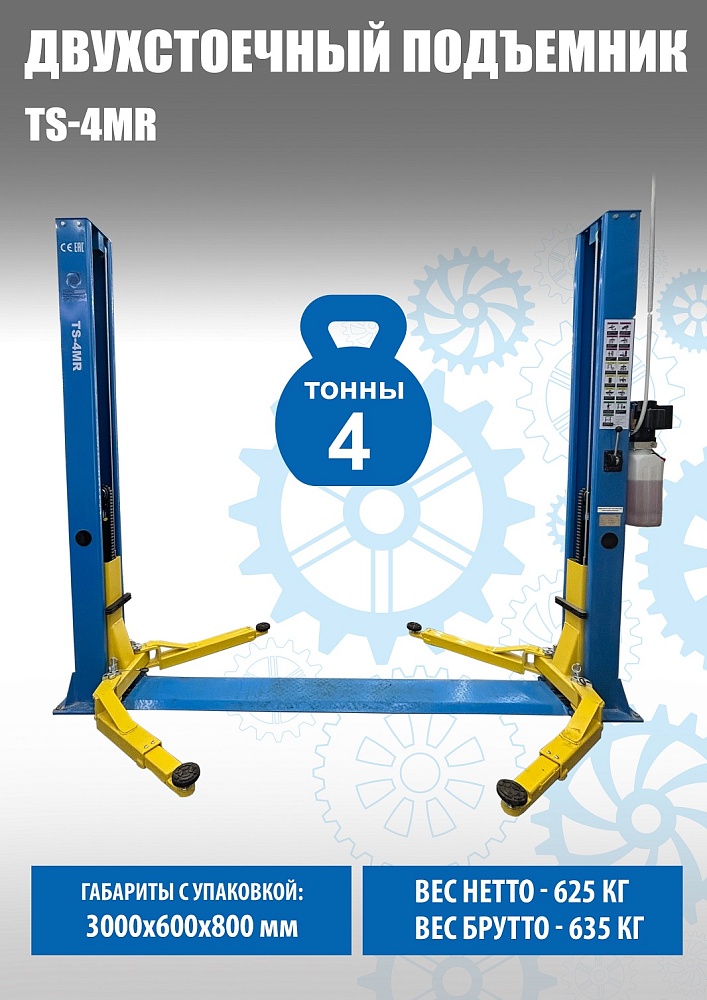 TS-4MR Подъемник 2-хст. г/п 4 т съем-ручка+проставки (2025) (220 V ТВ) купить в Уфе цена ✅ - Все для СТО