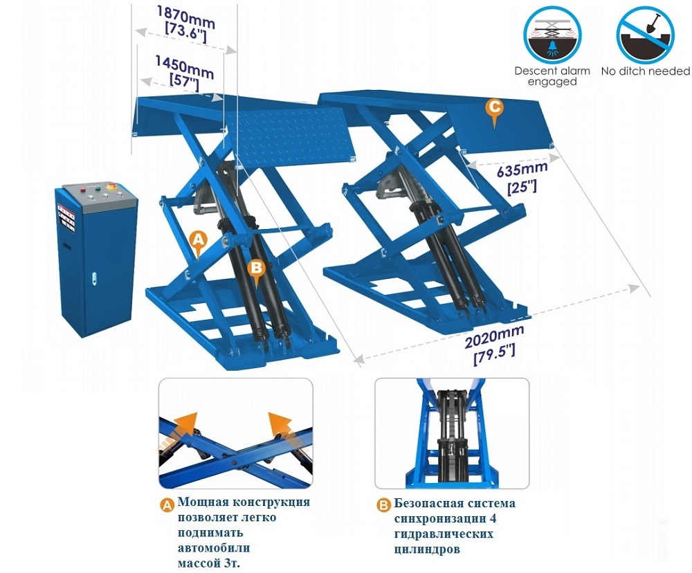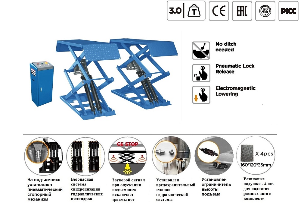ES-1113M Подъемник ножничный г/п 3 т напольный купить в Уфе цена ✅ - Все для СТО