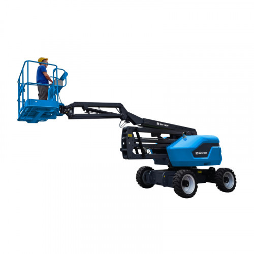 Самоходный коленчатый подъемник SKYER DKP1725 — это маневренная, высокопроизводительная техника с мощным дизельным двигателем. Рабочая высота модели составляет 16.6 м, максимальная грузоподъемность — 230 кг. Такое оборудование позволяет проводить работы даже в труднодоступных точках благодаря стреле с поворотным гуськом, коленчатыми сочленениями и корзиной, которая может вращаться на 160°.