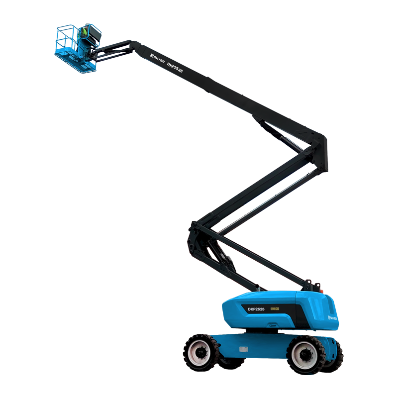 Самоходный коленчатый подъемник SKYER DKP2525 — это маневренная, высокопроизводительная техника с мощным дизельным двигателем. Рабочая высота модели составляет 25 м, максимальная грузоподъемность — 230 кг. Такое оборудование позволяет проводить работы даже в труднодоступных точках благодаря стреле с поворотным гуськом, коленчатыми сочленениями и корзиной, которая может вращаться на 160°.