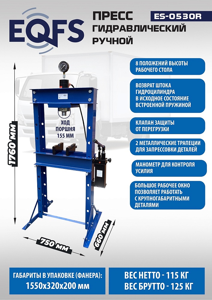 ES-0530R Пресс гидравлический ручной, 30 тонн купить в Уфе цена ✅ - Все для СТО