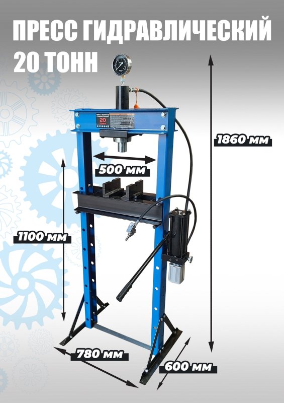 Пресс гидравлический оснащен насосом с ручными и пневматическим приводом с максимальным усилием 20т.
