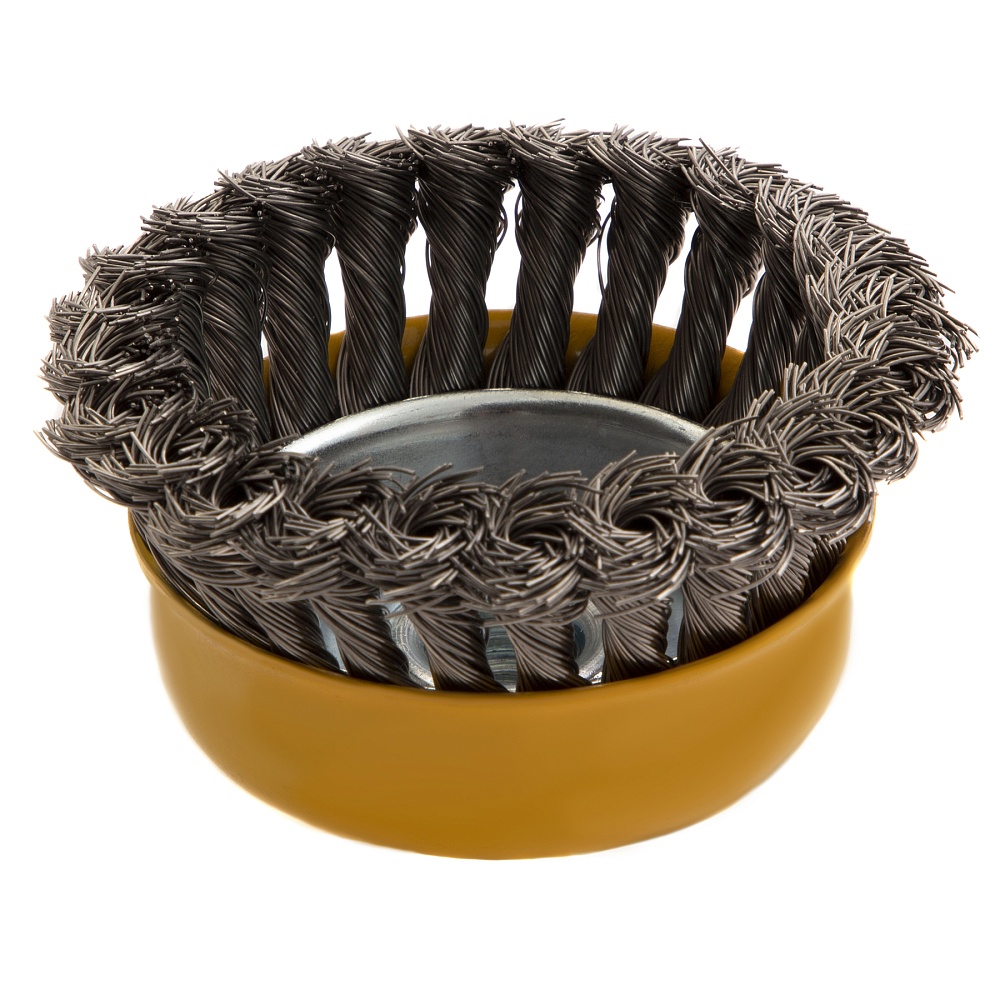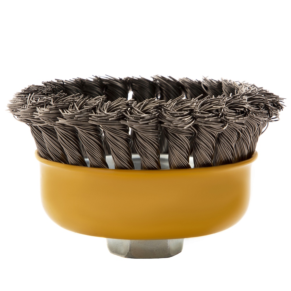 Щетка для УШМ, 100 мм, "Чашка", крученая нержавеющая проволока 0.5 мм, М14 Denzel купить в Уфе цена ✅ - Все для СТО