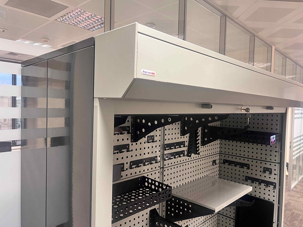 Модульная система хранения с тремя независимыми роллетными блоками. Сборная конструкция, оцинкованный металл, порошковая окраска, антикоррозийная обработка, множество вариантов наполнения.