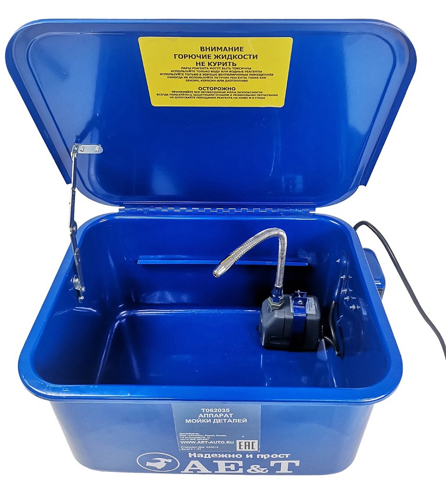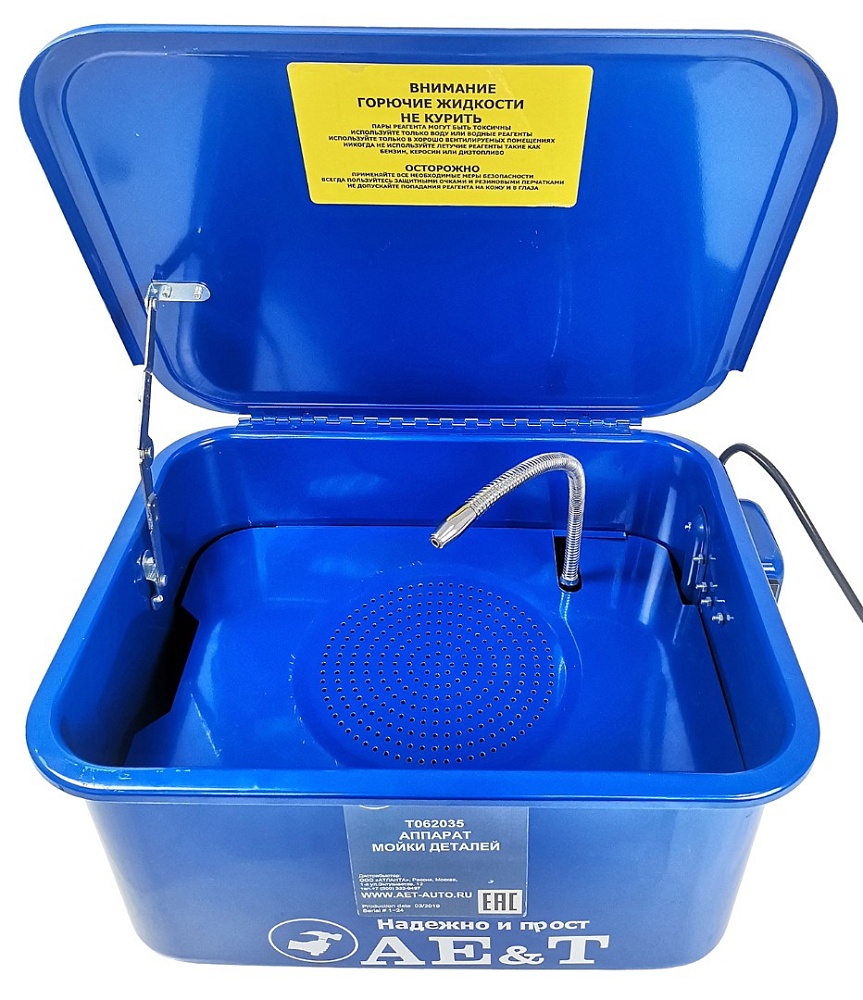 Аппарат мойки деталей T06220 AE&T объемом 75 литров позволяет одновременно помыть несколько запчастей с использованием химических средств в автоматическом режиме