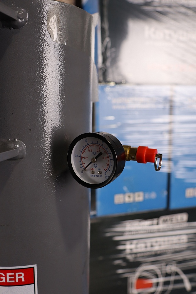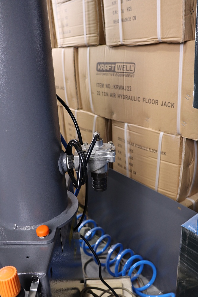 Вместо традиционного пистолета для подкачки шин используется шланг с управлением накачкой при помощи педали. Давление воздуха контролируется по манометру, установленному на колонне