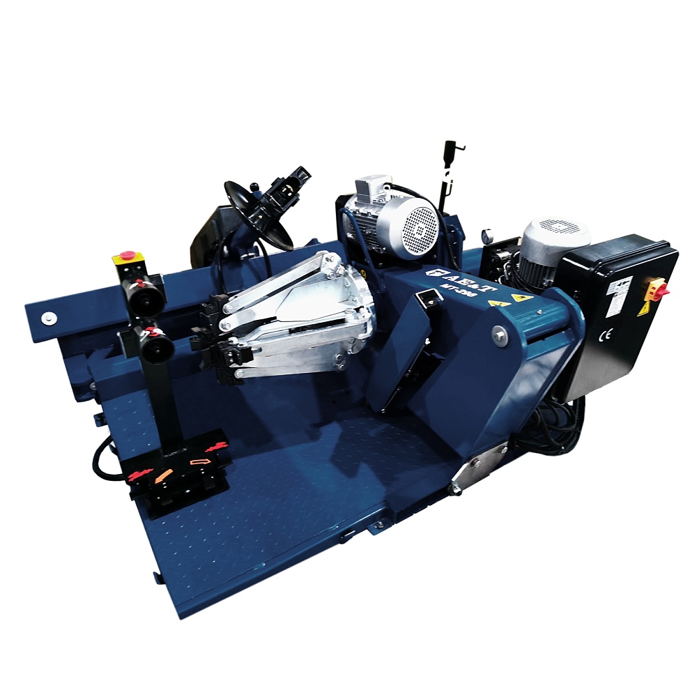 Стенд полностью автоматизирован, имеет две скорости вращения шпинделя, механизированный разворот монтажной головки, автоматическую блокировку монтажной консоли в «рабочем» положении; и позволяет проводить работы с самой жесткой резиной при минимальных физических нагрузках на оператора.