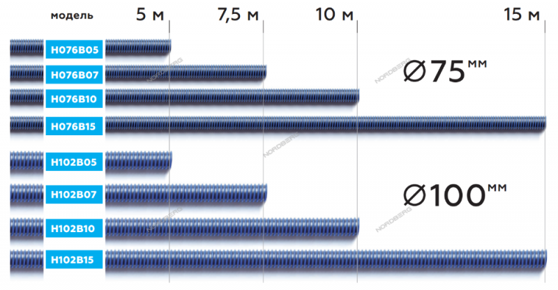 Шланг газоотводный H076B07 d=75мм, длина 7,5м (синий) NORDBERG купить в Уфе цена ✅ - Все для СТО