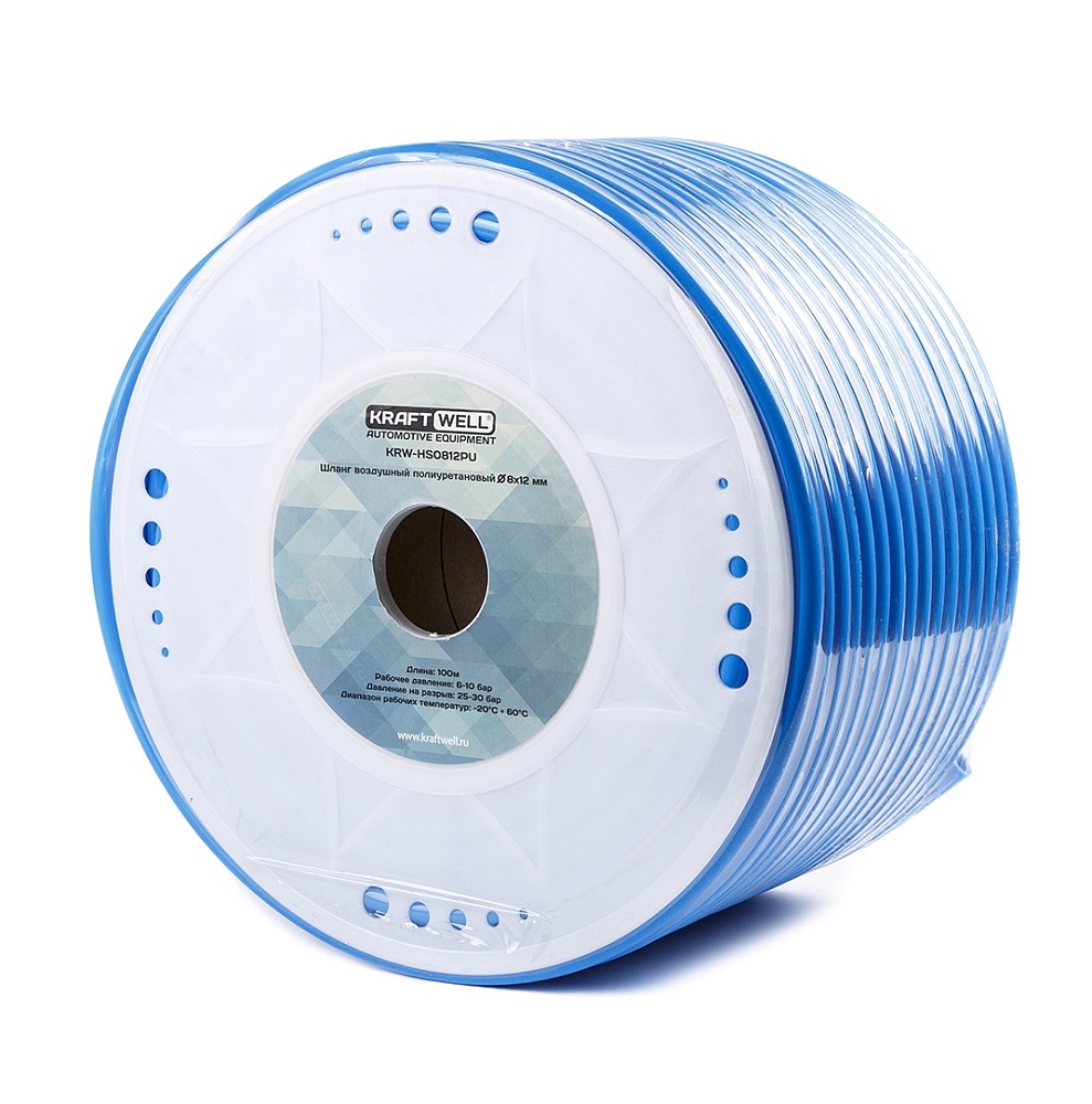 KraftWell KRW-HS0812PU Шланг воздушный полиуретановый на катушке D8X12 мм, 100 м купить в Уфе цена ✅ - Все для СТО