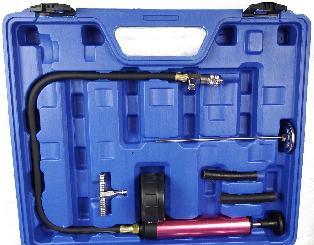 Тестер представляет собой набор деталей для диагностики систем охлаждения методом опрессовки.