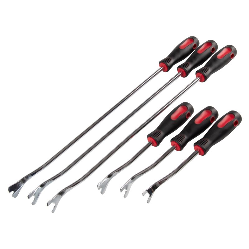 Инструменты имеют эргономичные рукояти из двухкомпонента PP+TPR, а форма съёмников позволяет проводить работы без опасения повредить приборную панель или внутреннюю обшивку авто.