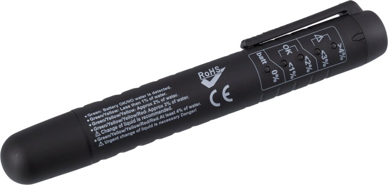 KA-1033 Тестер для тормозной жидкости. Тормозная жидкость очень гигроскопична. При попадании в тормозную жидкость влаги, она теряет свои свойства, что вызывает опасность некорректной работы тормозной системы. Тестер позволяет оценить качество тормозной жидкости путём измерения содержания в ней воды. Особенности: Светодиодная индикация качества тормозной жидкости (5 уровней). Удобный форм-фактор. Работает от батарейки типа ААА. Автоматическое отключение. Клипса для фиксации. Используется для поверки различных тормозных жидкостей (DOT3, DOT4, DOT5). Комплект набора: Тестер тормозной жидкости электронный - 1 шт. Элемент питания ААА 1,5 V - 1 шт. Блистерная упаковка - 1 шт. Будьте осторожны! Не допускайте попадания тормозной жидкости на поверхность кожи, в глаза и слизистые оболочки. Использование набора допускается только квалифицированным персоналом с соблюдением техники безопасности!