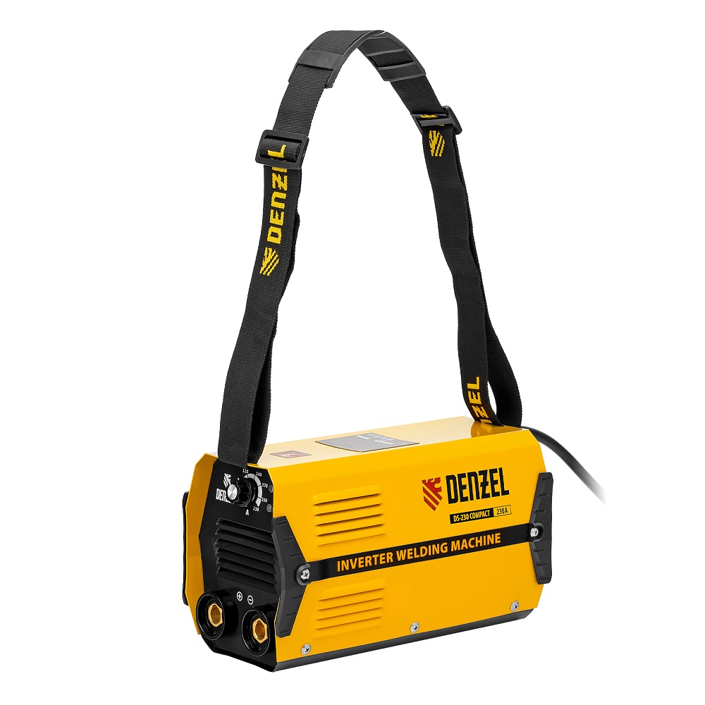 <p>Инверторный аппарат дуговой сварки Denzel DS-230 Compact 94374 с максимальной силой тока 230 А имеет продолжительность включения 70% и работает с электродами диаметром 1,6-5 мм. Используется для сварки стальных металлоконструкций толщиной до 14 мм, будет полезен в мастерской, гараже или на даче. Прост в эксплуатации, с ним без труда справится начинающий пользователь. Аппарат способен работать даже при низком входном напряжении 150 В, имеет высокий показатель продолжительности включения 70% и быстро остывает, что сокращает время работы и увеличивает эффективность сварки. </p><h2>Преимущества</h2><ul><li>Плавная и точная настройка — при помощи поворотного регулятора можно изменять величину сварочного тока для работы с электродами разного диаметра.</li><li>Быстрый старт — легкий поджиг (Hot Start) помогает зажечь дугу и повышает стабильность ее горения.</li><li>Высокое качество сварки — форсаж дуги (Arc Force) предупреждает ее обрыв в процессе работы.</li><li>Антизалипание электрода — функция Anti Stick позволяет легко отделить электрод от металла, не повредив обмазку.</li><li>Защита силовых компонентов (IGBT Shield) — аппарат автоматически отключается при перегрузке или коротком замыкании, предотвращая повреждение элементов платы.</li><li>Надежность — плата покрыта лаком, защищающим ее от пыли, а изоляционная пластина исключает возможность пробоя между радиатором и корпусом.</li><li>Устойчивость к внешним воздействиям — устройство имеет степень защиты IP21 и не боится проникновения капель воды и мелких предметов.</li><li>Улучшенное охлаждение — направляющая пластина обеспечивает эффективную вентиляцию, что способствует стабильному функционированию аппарата.</li><li>Качественный кабель питания — мягкий сетевой шнур длиной 1,5 м с PVC изоляцией не дубеет на морозе.</li><li>Комфортная работа — изделие весит всего 4,2 кг и комплектуется плечевым ремнем, поэтому его удобно перемещать.</li><li>Подтвержденное качество — гарантия на заводской брак действует 3 года.</li></ul>