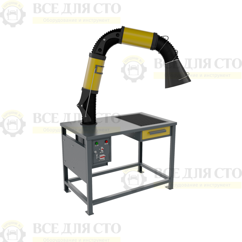 Стол СС-01 с вытяжкой специализируется на проведении сварочных работ, а также шлифовке и зачистки металлических изделий. Рабочее место используется на производствах, на строительных и ремонтных площадках, а также в мастерских и сервисах. Стол подходит как рабочее место сварщика или слесаря. Он изготавливается из прочной стали, которая покрывается полимерно-порошковой краской. Столешница изготавливается из стали толщиной 3 миллиметра и защищается термостойким покрытием, и имеет грузоподъемность до 600 килограммов.