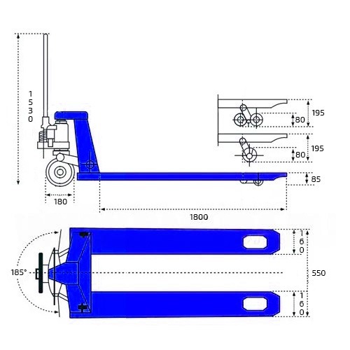 Высота подъема вил 195 мм