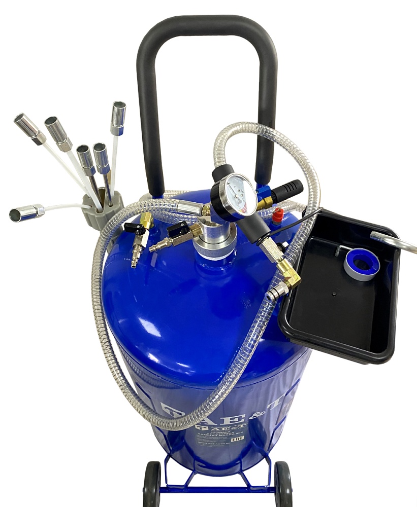 Установка замены масла TF-6290P – продвинутое решение для залива жидкости в двигатель любых автомобилей, которое совмещает в себе мобильность, компактность, удобство применения и длительный срок эксплуатации.