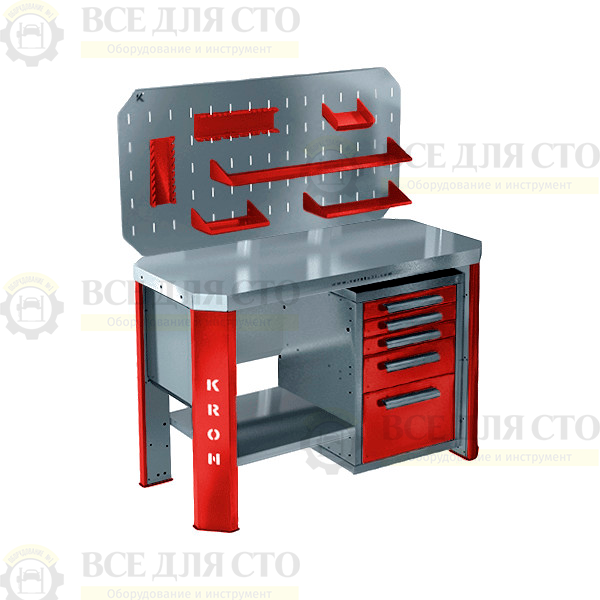 Повышенная прочность. Благодаря своей уникальной конструкции и толщине составных деталей, максимальная распределенная нагрузка на верстак может составлять до 6000 кг, а на ящики и полки 50 кг.