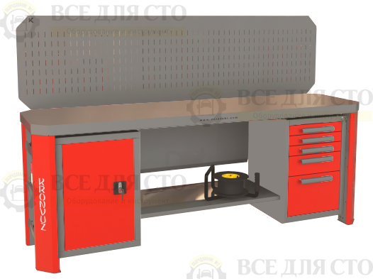 Повышенная прочность. Благодаря своей уникальной конструкции и толщине составных деталей, максимальная распределенная нагрузка на верстак может составлять до 6000 кг, а на ящики и полки 50 кг.